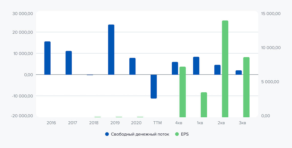 Основным сегментом бизнеса в части EBITDA является поиск и портал. Что касается прочих сегментов, то их EBITDA либо незначительная, либо имеет отрицательное значение — данные направления находятся в стадии активного развития.